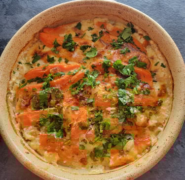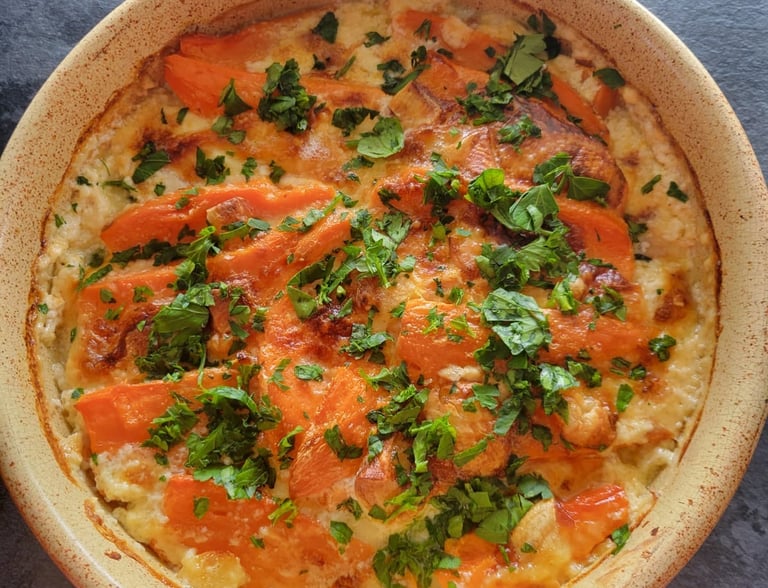 Couches de légumes du soleil gratinées au four.