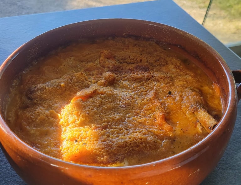 Velouté de légumes avec pesto maison parfumé.